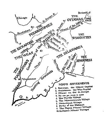 This information is a very small bit of history on the Wea. It would be an overwhelming feat to compile in one site the history of this area and the events that took place of the many Indigenous people here before, during and after removals. We have only covered our history in brief form from the 1600s to 1800s. The below is from a Book entitled The Last of the Miamis by Otho Winger And is retyped here in its exact form What the reader has to realize is that there were also the influence of the British, French and Americans during this time. This explains a little of where the Weas came from and what Nation we where a part of. ***************************************************** The Miami Nation of Indians (Wea, Miami proper, Piankashaw, and Eel River) was at one time one of the largest and one of the most powerful Indian tribes of North America. They formed one of the leading families of the great Algonquin race. When the white man first heard of them they were living in the vicinity of the great lakes. Father Marquette paid them a high tribute. LaSalle described them in this way: “The Miamis are the most civilized of all nations of Indians - - neat of dress, splendid of bearing, haughty of manner, holding all other tribes as inferiors.” At one time they must have ruled a great inland empire. Their great chief, Little Turtle, at the treaty of Greenville, said to Gen. Wayne: “The prints of my ancestors’ houses are everywhere to be seen in this region. It is well known to all my brothers present that my line to the head waters of the Scioto; from thence to its mouth; from thence down to the Ohio to the mouth of the Wabash and from thence to Lake Michigan - - I have now informed you of the boundary of the Miami Nation where the Great Spirit placed my forefathers a long time ago and charged him not to sell or part with his land but preserve it to his posterity.” A study of the map (see below) will show that Little Turtle claimed For the Miamis an Immense territory including all of the present state of Indiana, the western part of Ohio, and the eastern part of Illinois. Gen. William Henry Harrison, who knew the Miamis well more than a century ago once wrote that the Miamis were the most extensive land owners in the northwest. The historian, Bancroft, makes the same claim for them. To say the least they possessed a great inland empire. Some early writers tell us that the Miami Confederacy was the most powerful in North America, rivaling that of the Iroquois Confederacy of New York. It is said that they could place in the field an army of five thousand warriors. An early account tells us of great chiefs who never went forth to war except surrounded by a body guard of forty warriors. So great was their influence that delegations from Indian tribes beyond the Mississippi came to gain favors. At an early date the chief village and the capital of the Miami nation was Kekionga, where the city of Fort Wayne now stands. It was Located well near the center of this great empire and commanded the trails and river highways in all directions to other Miami centers at Chicago, Miami on the St. Joseph, Detroit, Miami on the Lakes, Ouiatanon, the Mississinewa and the villages on the rivers of southern Ohio where the Miamis have left their names. It has been said the Kekionga at times was a collection Indian villages totaling a population of ten thousand people. The accompanying map shows the wide domain once claimed and ruled over by the Miamis. It also shows how, in later times, other Indian tribes entered this territory, either by invitation from the friendly Miamis or by forcibly taking possession if the Miamis opposed. This golden age of the Miami Nation was back in the seventeenth century and earlier. From all that we know of them in the eighteenth century they were much weaker and were a declining nation. A number of things brought this about, chief of which was their conflict with other Indian tribes. The fierce Iroquois, “The savage Romans from the east” made inroad after inroad into the land of the Miamis and drove them westward and into alliance with the Illinois Indians. This must have greatly weakened the proud Miamis, though under the leadership of the great Aquenackque, the father of Little Turtle, and with the aid of western allies they drove the Iroquois back eastward until them came no more. Following this war with the Iroquois, the Miamis engaged in another conflict even more disastrous with the tribes of the west. Tradition says that the Sioux Indians treacherously fell upon the Miamis and massacred thousands of them. Another account, more reliable, says that after the Miamis had united with the Potawatomies and other tribes to exterminate the Illinois Indians, the allies fell out and the Miamis were disastrously defeated by the Potawatomies and Kickapoos. They not only lost their lands in Illinois but the Potawatomies and the Kickapoos took possession of all northern Indiana as far east and south as the Wabash river and her tributaries. Other Indian tribe made inroads into the ancient domain of the Miamis. The fierce Shawnees, driven out of the south by other Indians made settlements in southern Ohio, and there, on Mad river, near where Springfield now stands, their greatest warrior, Tecumseh, was born. They came as far north as Wapakoneta and Kekionga. The Ottawas from the north came down into northern Ohio and where Defiance now stands, at the junction of the Auglaize and Maumee rivers, their great warrior, Pontiac, was born. The ancient Delawares driven westward by the whit man made settlements in central Ohio and extended their claims to central and southern Indiana. The Hurons, or Wyandottes, also driven westward by pressure of the white man, settled in northern Ohio. Other tribes had helped themselves to certain lands which the Miamis once claimed. So even in 1795, when Little Turtle made his wide claims to General Wayne, there were a number of other Indian tribes to 